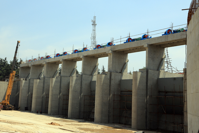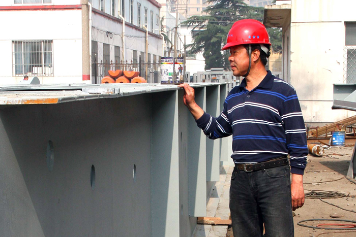 2013年春节前,为配合泗阳市政府迎宾大道工程建设,水利厅决定提前实施泗阳闸拆除重建工程,省水建公司中标承建该项目,水机公司负责该项目闸门、埋件和启闭机的制作与安装任务。由于必须在今年5月底前完成水下工程验收,满足防汛要求,整个项目的建设工期只有4个多月,而留给闸门、埋件和启闭机制作与安装的时间只有3个多月,又是一个工期急、任务重、难度高的项目。调度的任务自然再次落到了顾建华同志的肩上。为了完成这一急难任务,同时又要保证其它在建项目不受影响,他和车间工人一起,放弃春节休息,正月初二就开始了忙碌。当别人还在走亲访友欢宴聚餐时,他们已在焊光闪闪和锤声铿锵中劳作了;当别人正在欣赏五彩焰火七彩灯景时,他们正在加班加点挑灯夜战。白天,他拿着图纸奔波于各车间、现场之间;晚上,他拖着疲惫的身躯到家后,还要谋划考虑第二天的安排;支铰座因一期预埋,尺寸要逐一复测配合,他带着尺子自己测量定位置;工地要货了,他亲自清点、归分、做标记;铰座装配缺人手,他二话不说顶上去……为了能按期交货,从春节到“五一”,他几乎没休息过一天。在他的带领下,全体参建人员齐心协力,日赶夜抢,终于按期保质地完成了任务,为泗阳闸“5·