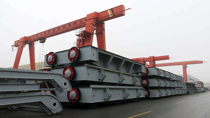 假期可以延长,而2020年汛期不会因为疫情防控而延时。确保按时完成水利工程汛期任务,是水利人在打赢疫情防控战的同时必须打赢的另一场战役。水机公司承担了多项重点水利工程的钢结构生产任务,这里面有国家172项节水供水重大水利工程新孟河界牌水利枢纽的拦污栅、清污机,有无锡重点水利工程定波水利枢纽的钢闸门,有引江济淮工程东淝船闸的闸门,以及刘老涧、陆泾河等20多项水利工程的钢结构制作,都必须在汛期完成厂内制作和现场安装任务,时间紧、任务重。