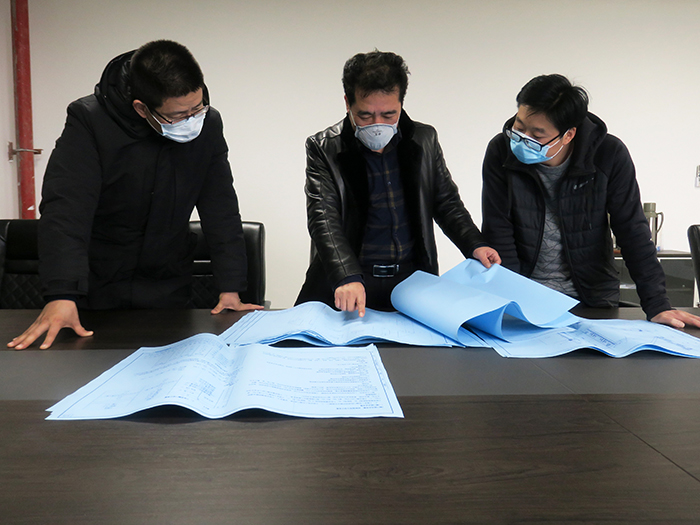 214日清晨730分,浓浓的雾气尚未散去,江苏水利机械制造公司的员工已经戴着口罩在大门口列队,测量体温,登记卡片,陆续进入厂区,开始了一天紧张的工作。