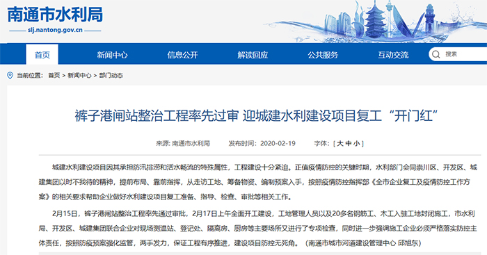 217日,由我公司一分公司承建的南通市裤子港闸站工程全面复工。项目部一手抓防控措施落实,一手抓安全复工筹备,工作得到南通市水利局、南通市经济开发区的肯定和表扬。