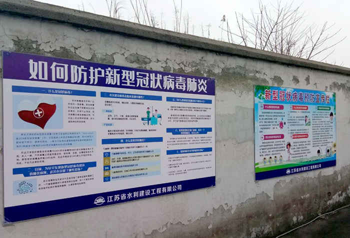 项目部通过微信群、QQ群层层推送、宣传新型冠状病毒肺炎防控知识,制作和悬挂相关防疫宣传标语横幅,在显眼处摆放宣传的标识标牌,不断强化疫病防控知识的教育普及,做到对疫情不懈怠、不恐慌、不传谣。