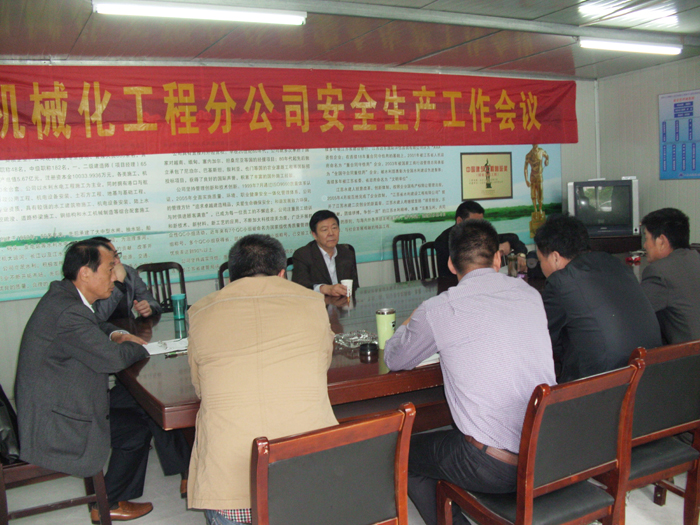 516,在即将迎来2013年“安全生产月”前夕,机械化分公司在淮河入江水道运河西堤项目部召开安委会扩大会议,全面动员、布置“安全生产月”及“安康杯”安全生产竞赛活动,并就当前及今后一段时间的生产经营工作作了布署。