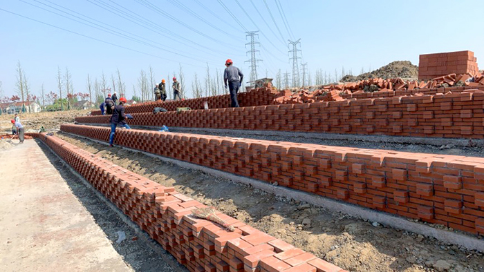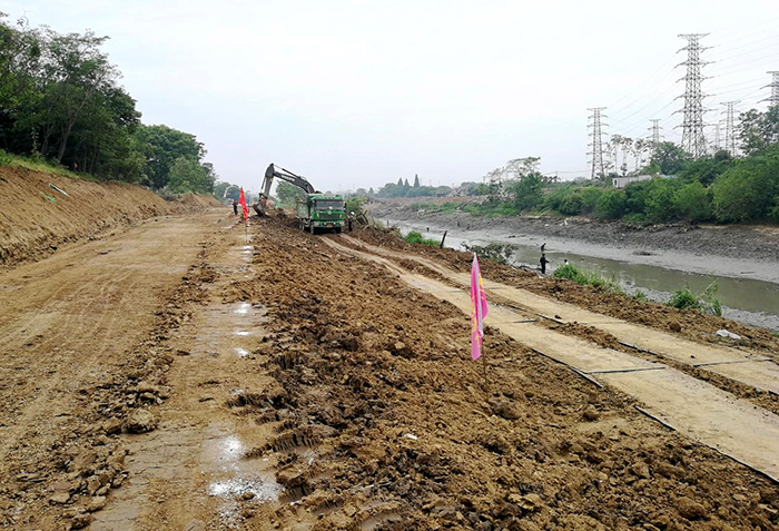 与度汛抢工不同的常州经开区鹅颈湾生态修复工程,则为了充分利用春夏季适宜苗木种植的时间段,项目部正加快组织地型营造、苗木种植等工作。同样的530日节点工期,项目部的目标是完成地型营造80000m3;苗木(乔木、灌木等)种植4000株;小苗种植60000m2;亲水平台花岗岩铺装2000m2;十里花阶砖艺挡墙砌筑1000m;园路(5米、3米、2米)施工5000m2。目前各项工作较为进展顺利。