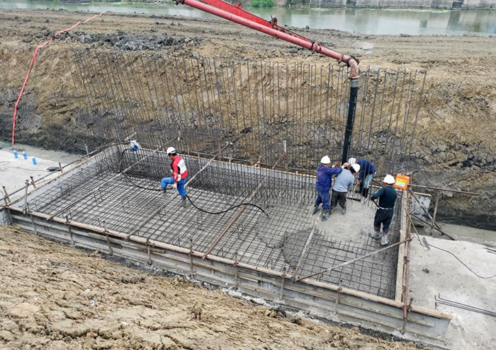 根据工程安全度汛要求,新孟河延伸拓浚工程武进区太滆运河I标计划530日前完成A1A2型护坡施工1294m,洪湖桥西侧B1型挡墙施工460m,并拆除相应段钢管桩围堰。项目部在复工后重新调整了进度计划,增配了人员及设备,积极有序地推进施工进展。目前已完成A1A2型护坡施工990m,预计到55日可全部完成;520日前能够拆除护坡段钢管桩围堰,确保河道行洪不受影响;已完成B1型挡墙底板浇筑210m,墙身浇筑70m,预计530日前能够完成全部挡墙施工。