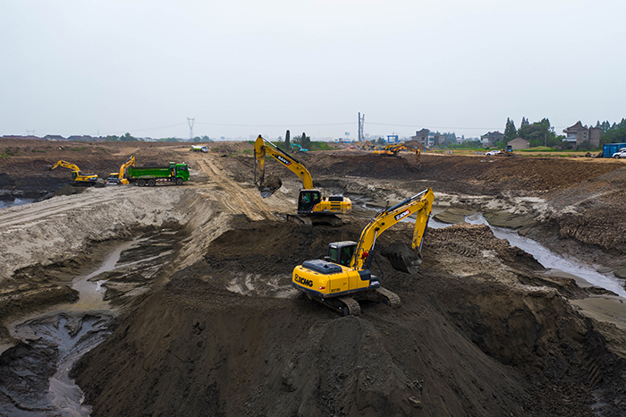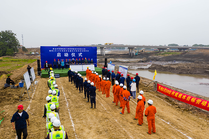 5月的工地晨风微拂,司旗招展,机声隆隆,河道雏形初现,项目部各施工班组整齐列队,拉开了确保6月30日河道应急通水目标劳动竞赛活动的序幕。
