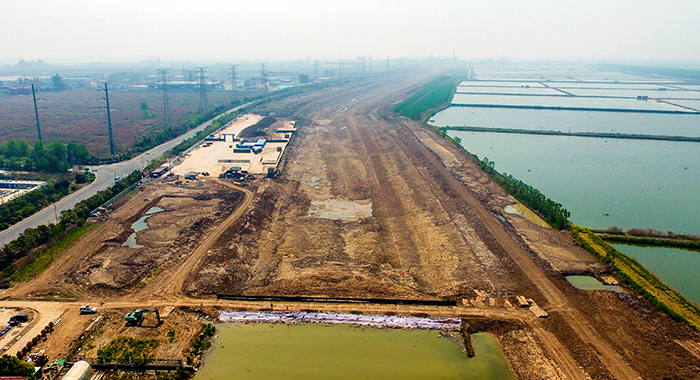 烧香支河(板桥段)位于连云港市连云区板桥街道境内,是连云港市临港产业区大型工业区和重要的海洋经济区,具有防洪除涝、自排、蓄水等能力。工程因受疫情影响,开工时间推迟了一月。为确保按时完成水下工程阶段任务,项目部加快进度,增加机械量,同时严抓施工质量、施工安全,做到安全、质量、进度齐头并进。