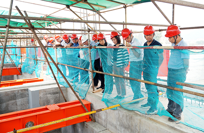 6月17日,无锡市水利局在定波水利枢纽项目部组织召开水下工程验收会议,验收成员抽查了泵站闸门运行情况,经充分讨论,一致同意定波水利枢纽通过水下工程验收。