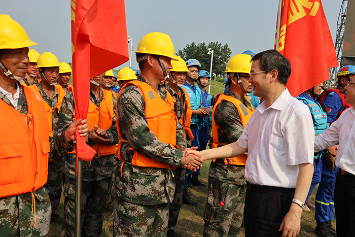 6月27日至30日,江苏省防汛抗旱指挥部在南京六合举行2020年防汛应急抢险救援实战演练。30日下午,副省长惠建林现场观摩演练并讲话;演练结束后,惠建林副省长等领导看望慰问了参演队员。我公司董事长顾明如应邀现场观摩演练,公司防汛应急抢险队参加实战演练。