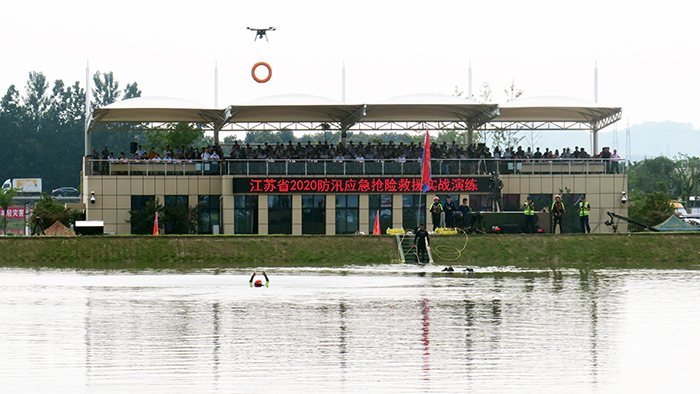 演练结合江苏防汛抢险实际,模拟沂沭泗地区河湖库水位持续上涨、多处堤防出现险情、群众落水遇险情况下的应急抢险救援场景,涵盖应急预案、专业科目、救援救灾演练等四大类36个科目。来自省气象局、消防救援总队、红十字会、水文局、中国安能集团常州分公司、省属防汛抢险队、防灾减灾中心、水利防汛物资储备中心、省水建公司、蓝天救援队等单位的13支队伍400余名队员参加演练。