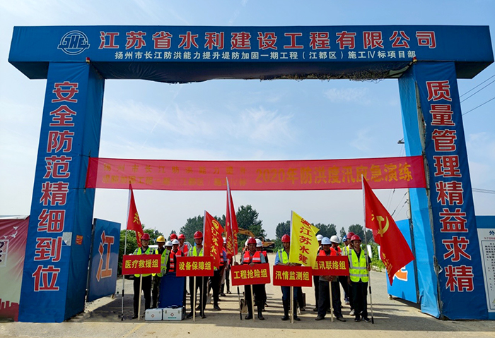 716,公司基础工程分公司承建的扬州市长江防洪能力提升堤防加固一期工程(江都区)施工Ⅳ标、施工Ⅴ标及扬州市长江防洪能力提升堤防加固二期工程(江都区)施工Ⅱ标项目共同在圣容涵东侧江堤开展了防洪应急演练活动。项目部管理人员及各作业班组共计40人参加了演练活动。