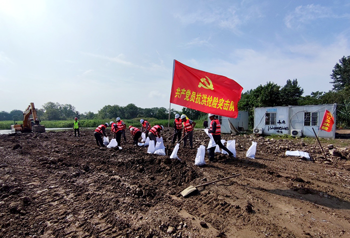 演练过程中,项目部组织了汛情监测组、通讯联络组、设备保障组、工程抢险组、医疗救援组以及共产党员抢险突击队,并调动了挖掘机、装载机、面包车等机械设备,快速有序地组织人员撤离,并对漫水堤段进行加固。经过全体参演人员的共同努力,紧张有序的防洪应急演练圆满完成。