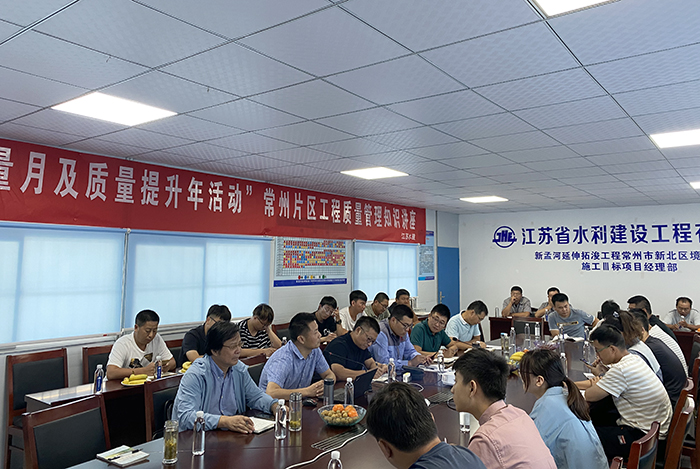 911日上午,基础工程分公司、常州分公司、机械化分公司在常州新孟河河道3标项目部联合启动2020年质量月暨质量提升年活动,同时开展了水利工程质量管理业务专题培训。常州市周边在建工程质量管理人员参加了专题培训,常州分公司周扬经理、基础工程分公司王志元书记、机械化分公司吴刚副经理出席启动仪式。