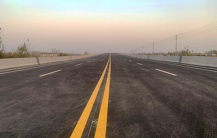 翔盛路大桥位于船闸上游U型槽上,桥梁全长598.48米,主桥采用截面预应力砼连续梁,引桥采用20米装配式预应力砼空心板,桥梁全宽为21米,下部结构采用矩形盖梁式墩和桩柱式桥台,钻孔灌注桩基础。工程于2018428日开工,2020107日完成桥面沥青混凝土铺装。