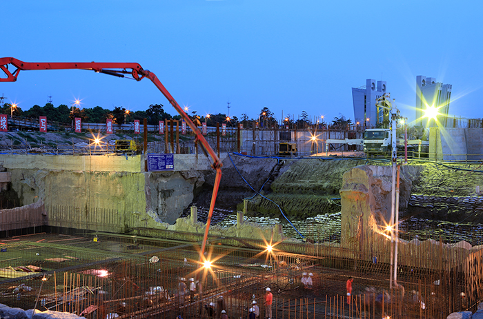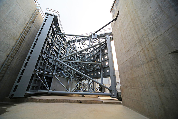 ——二线船闸施工期必须同时保证一线船闸的正常通航和工程安全,不均质地基上的深井降水、闸首开挖的深基坑支护、多种地基和防渗处理结构交叉等技术难题,都在考验着建设者的智慧和能力。二线船闸上闸首基坑开挖深度近15米,二线与一线船闸中心线相距仅70米,上闸首边墩相距仅29米,同时还需对运行中的一线船闸上下游导航墙进行加固和改造。工程施工中,项目部在建设局、设计、监理和各参建单位的大力支持和帮助下,根据工程近、深、长、新、全的特点,开展质量创优、技术创新、文明创建和安全达标,全面推动工程攻坚克难,科学施工。