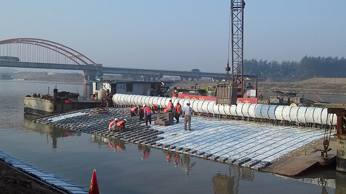 ——河道工程在一期工程基础上扩建,全线24公里河道向下浚深3米,自流引江规模从300立方米每秒扩大到600立方米每秒。河道工程项目部制定了高标准的质量目标和创优计划,河道浚深重点解决不断航施工的矛盾,采用的软体沉排护岸施工工艺,为江苏省内河防护项目首次应用;船舶临时停靠点采用滑模技术,疏浚排泥场应用泥水快速分离试验成果,实现了安全、高效、环保施工。