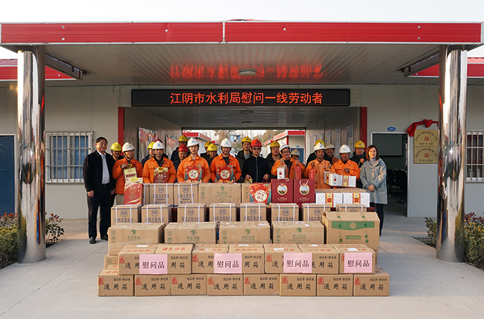 新春佳节即将到来之际,120日下午,江阴市水利局局长傅建荣、副局长陈转兰专程走访慰问了奋战在定波枢纽和锡澄运河河道整治工程一线的施工人员,并为一线员工们送去了米、油等慰问品。