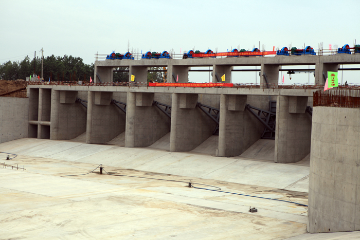 “你们要和时间赛跑,要和洪水赛跑,保证质量、进度和安全,确保5月31日完成水下工程,确保工程安全度汛”。这是省水利厅李亚平厅长、陶长生副厅长、朱海生局长等多次检查泗阳闸工程时的嘱托。省厅和相关部门多位领导多次到泗阳闸指导工作。省厅的质量监督、安全督查都是同类工程中频次最高的;建设处、设计院、监理公司更是每天在现场提供技术帮助,解决进场道路、交叉施工、资金贷款等各种问题;泗阳县委县政府多次到现场协调矛盾,慰问员工。应该说整个泗阳闸施工过程倾注了全体江苏水利系统干部职工的心血,也寄托了泗阳县父老乡亲的真挚情感。