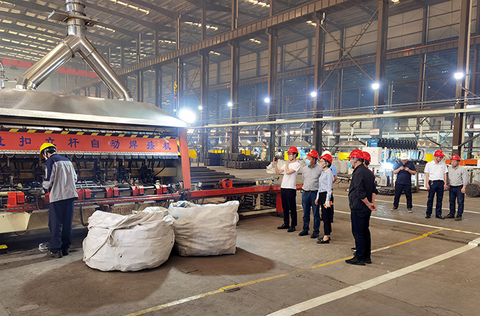公司领导夏国春、姜启生以及财务物资部、工程部负责同志详细了解了生产厂家盘扣式脚手架主要构配件、产品优势以及应用实例,并至生产车间实地了解了企业的生产规模、加工设备、自动化程度以及生产流程。