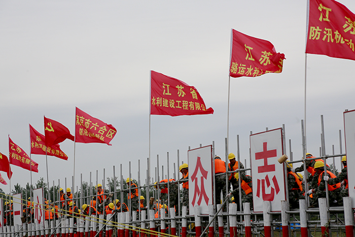 我公司参演科目为“钢木土石组合坝”,由综合管理部组织带队,分别从一分公司、基础分公司、材料设备管理中心抽调了20名精干熟练技术工人组成演练队伍,从6月1日起,连续三天接受防汛知识培训和实战操练。在6月3日的演练现场,抢险命令发布后,公司抢险队员立即奔赴现场展开作业,紧张有序地搬运钢管,搭建脚手架,打设木桩,紧固扣件……迅速竖起了一道钢木土石坝,成功封堵了溃坝决口。公司参演队伍在整个演练过程中充分发挥了专业特长,展现了过硬的素质和良好的精神风貌。
