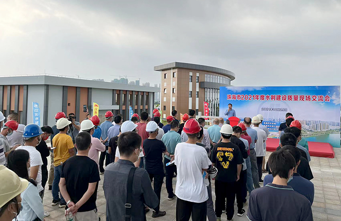 10月29日下午,珠海市2021年度水利建设质量现场交流会在我公司承建的珠海市斗门区白蕉联围排涝整治工程白藤泵站项目部开展。活动由珠海市水务局主办,珠海市各区水行政主管部门、市水务工程质量安全管理中心、市水务协会以及在建水利工程参建单位近100名代表参加了交流会。