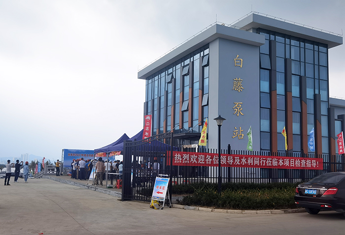 白藤泵站工程为广东省农村重点易涝区整治工程规划建设项目之一,泵站为大(2)型,设计防洪标准为100年一遇。泵站水泵机组为5台,设计流量为60m3/s,泵站总装机容量2750KW。公司于2018年7月承建,2020年5月主体工程完工并发挥工程效益。